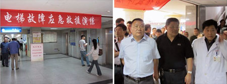 為了加強對電梯安全事故的防范、及時做好安全事故發(fā)生后的救援處置工作,最大限度地減少事故造成的損失,提高快速反應(yīng)能力,維護醫(yī)院正常的就醫(yī)秩序。5月21日下午,在江蘇省特種設(shè)備安全監(jiān)督檢驗研究院蘇州分院指導(dǎo)下,我院后勤服務(wù)中心聯(lián)合門急診部、保衛(wèi)處及三星電梯公司進行一場電梯應(yīng)急救援演練。這次電梯安全事故應(yīng)急救援演練,分工明確,緊張有序,臨陣不亂,應(yīng)對措施得當(dāng),取得了圓滿成功。