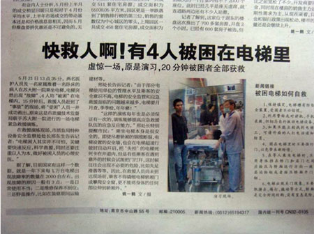 揚子晚報(2012年5月22日C1版)對本次演練報導(dǎo): |