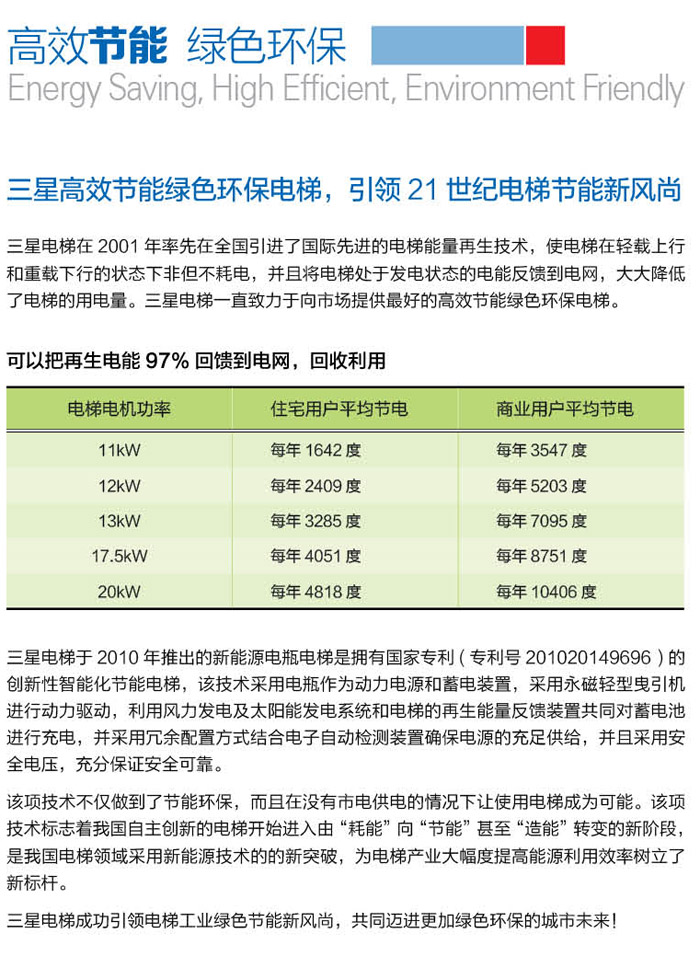 三星高效節能綠色環保電梯,引領21世紀電梯節能新風尚